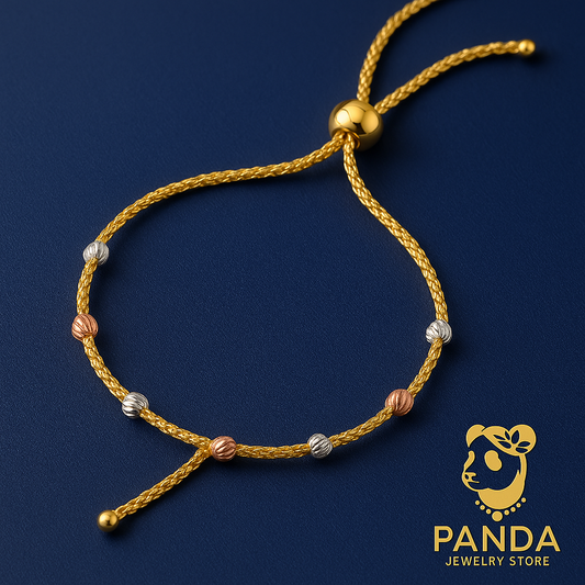 ✨14k Tri-Color Gold Textured Bead Station Lariat Bracelet (5.00 mm)