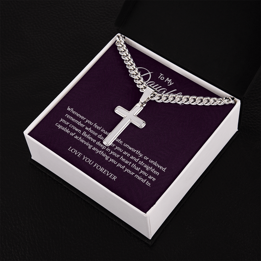 Personalized Cross with Cuban Link Chain 18k yellow gold finish or polished stainless steel