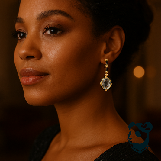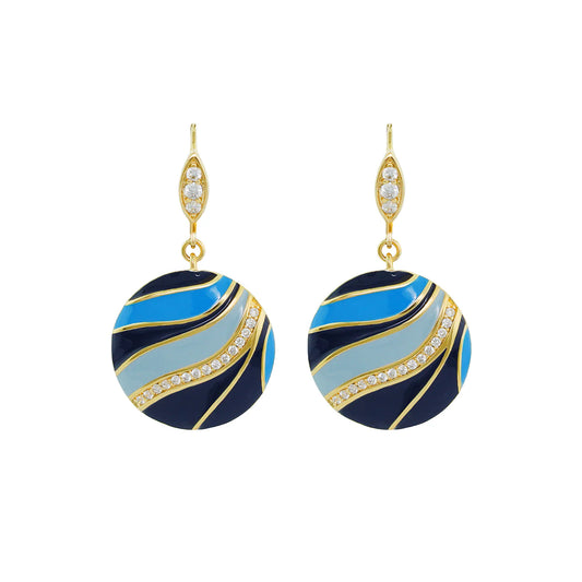 🍒Elegant Ocean-Inspired Blue and Gold Statement Earrings
