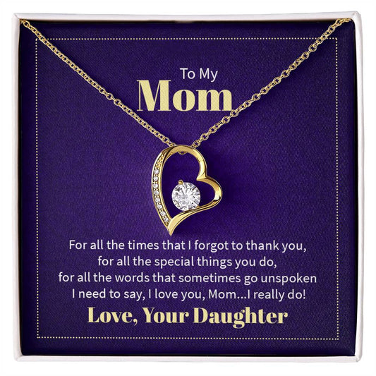 To My Mom | From Daughter | Romantic Heart Necklace with Dazzling Crystal Accents For Her