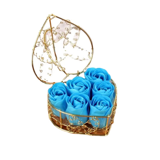 🌹Eternal Blue Roses in Gold Heart Box – Luxury Romantic Gift for Her