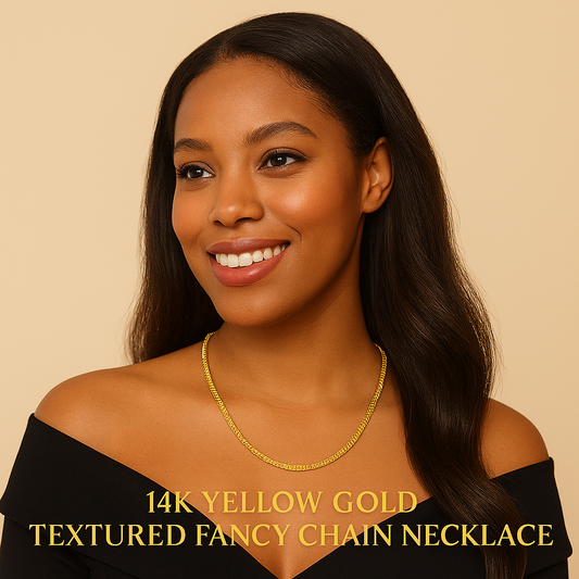 🌹14k Yellow Gold High Polish The Textured Fancy Chain Necklace (4mm)