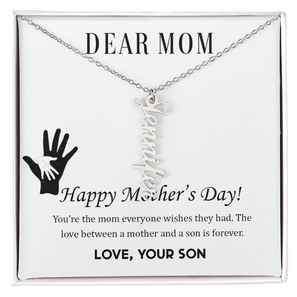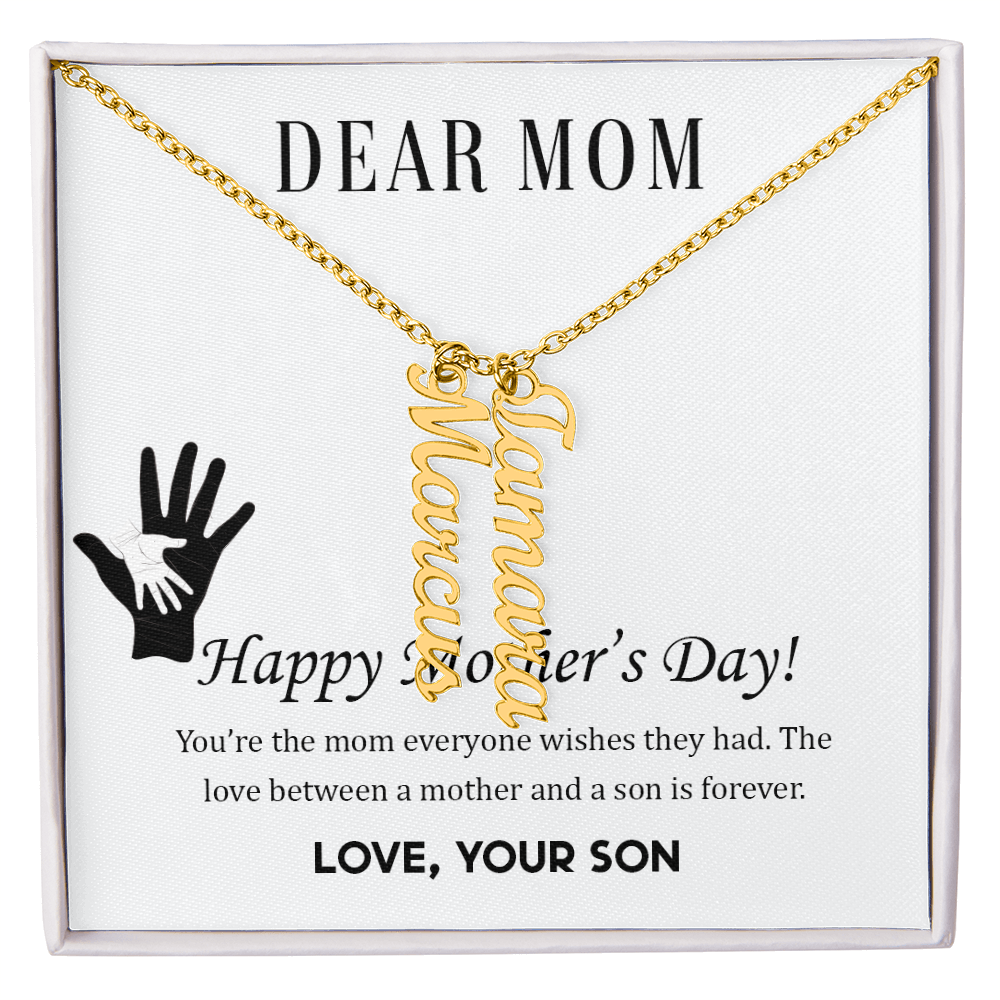 To Mom | From Son Multi-Personalized Vertical Name Necklace – Custom Gold Name Pendant Gift